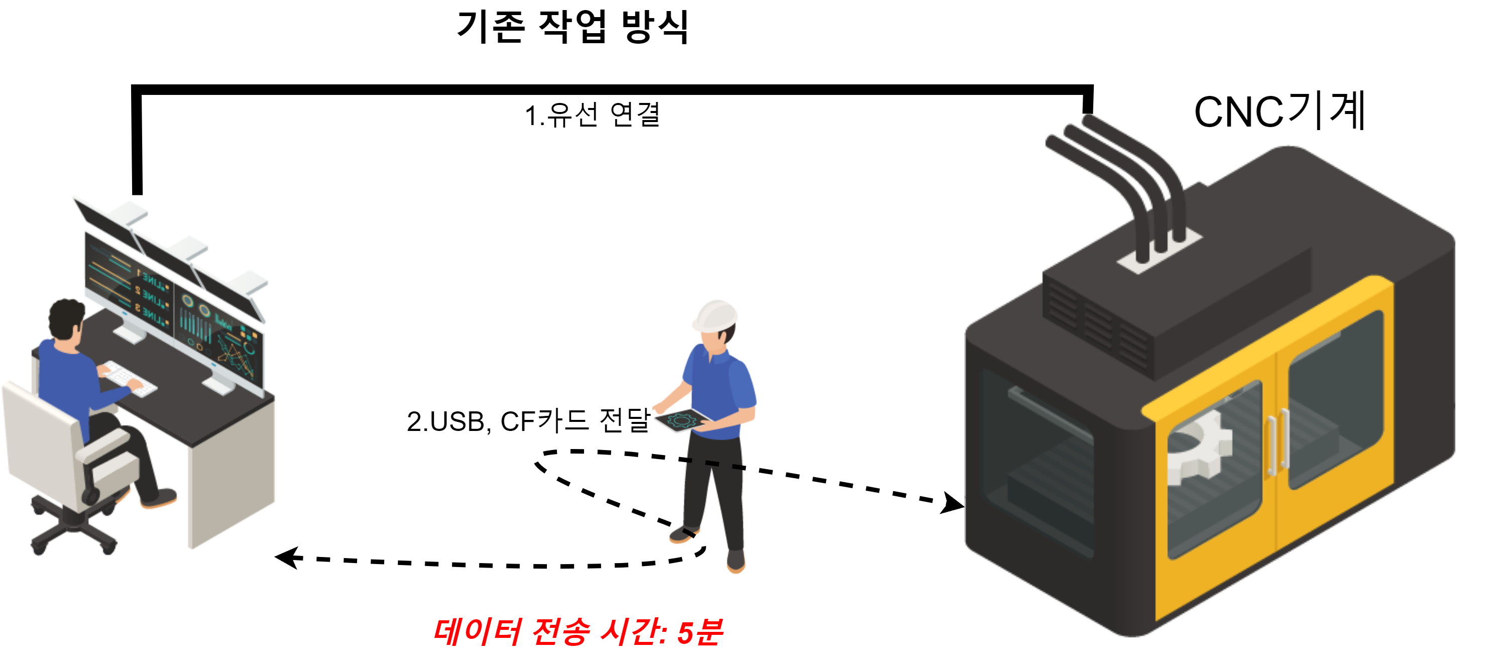 일반 공유기나 메쉬 망으로 사용 시 대역폭, 데이터 처리 등으로 인해 1시간 이상 DNC가공이 어렵고 위험하지만,
