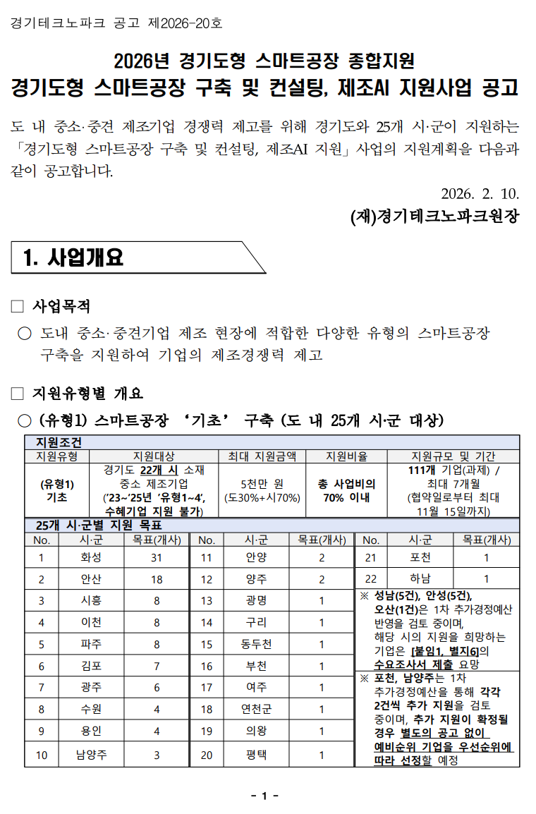 2026년 경기도형 스마트공장 공급기술 상용화 지원사업 안내