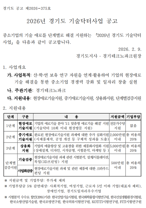 - 사업명 : 2026년 경기도 기술닥터사업